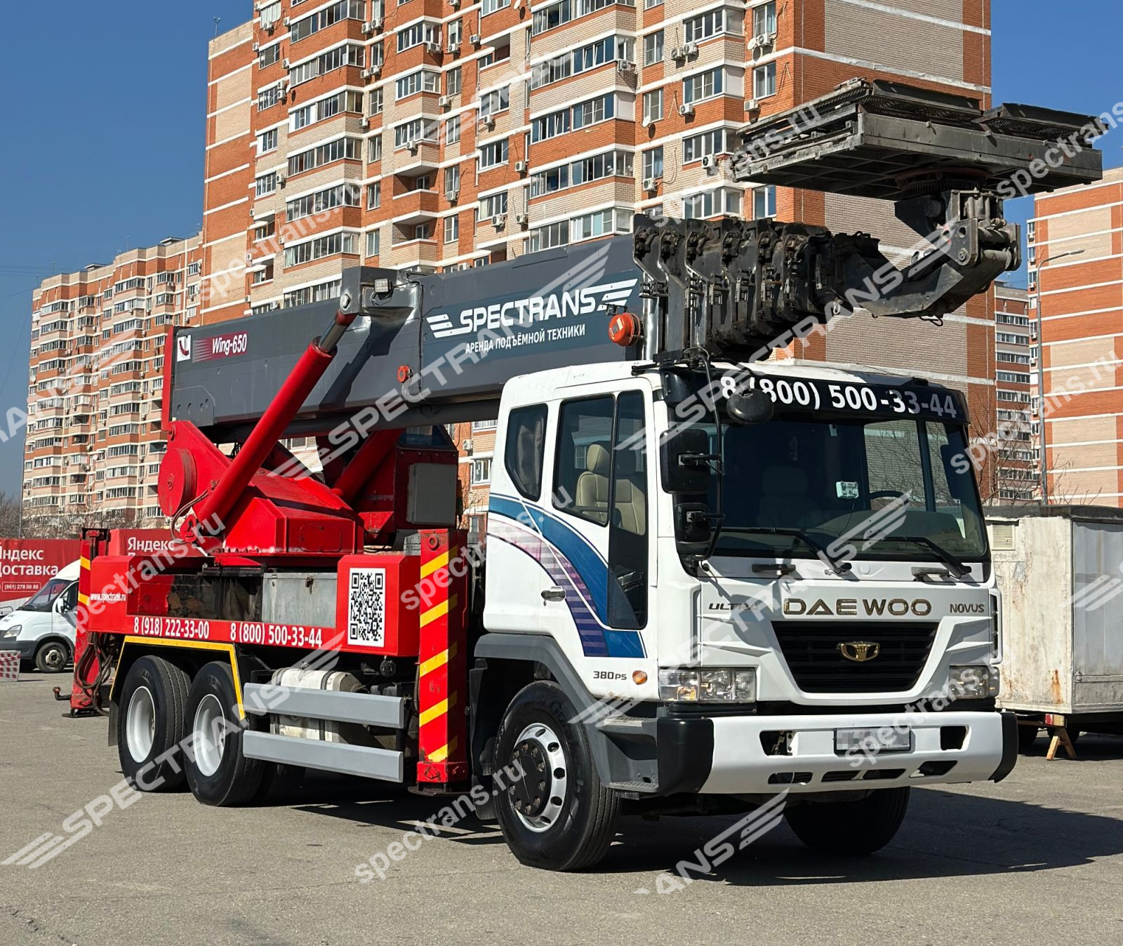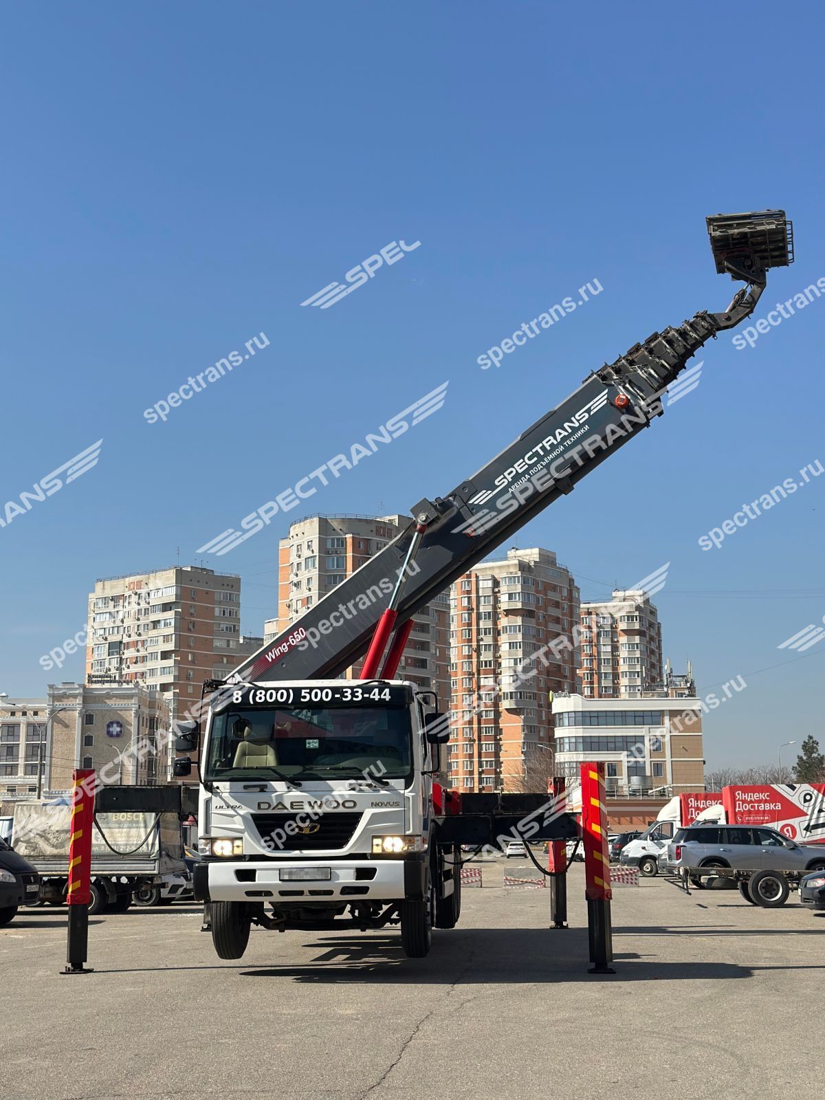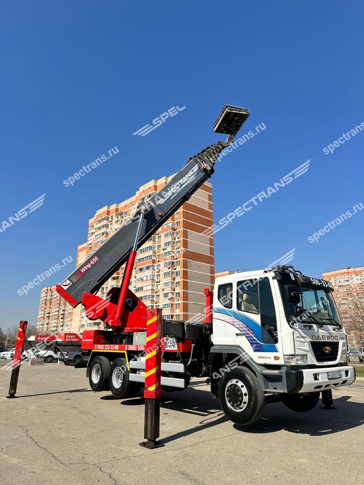 Аренда автовышки вездехода 45 метров. Установка сплит системы