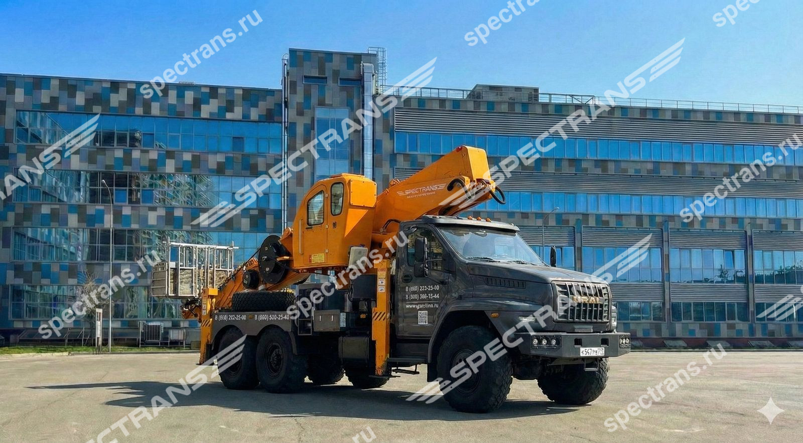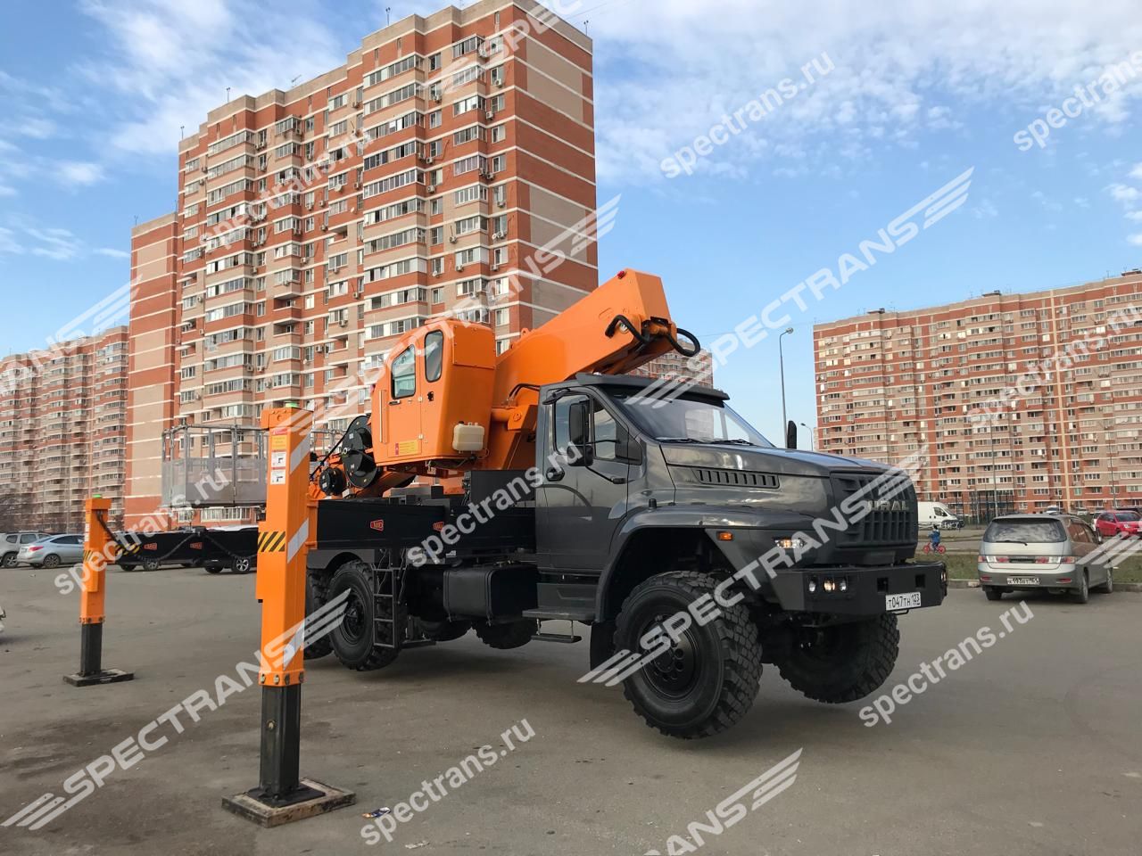 Автогидроподъемник на полноприводном шасси повышенной проходимости на базе URAL NEXT 6x6. Предназначена для работ на высоте в труднодоступных и труднопроходимых местах, таких как лесополосы, заболоченная местность и строительные объекты.